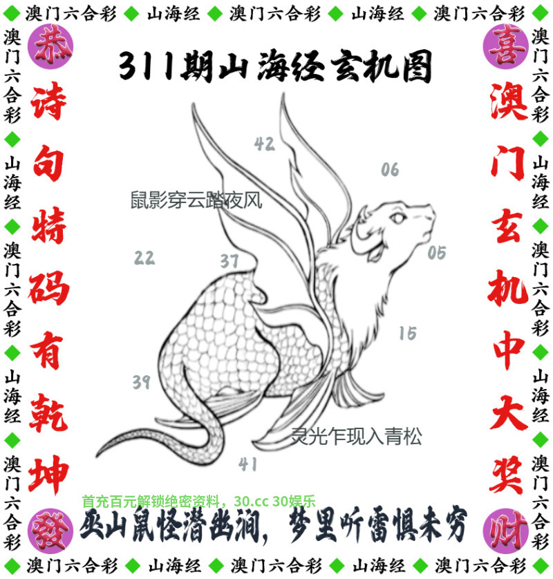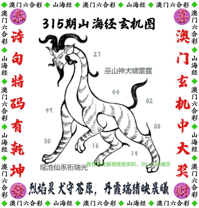 解释:巫山神犬啸雷霆,瑶池仙豕衔瑞光解狗虎兔