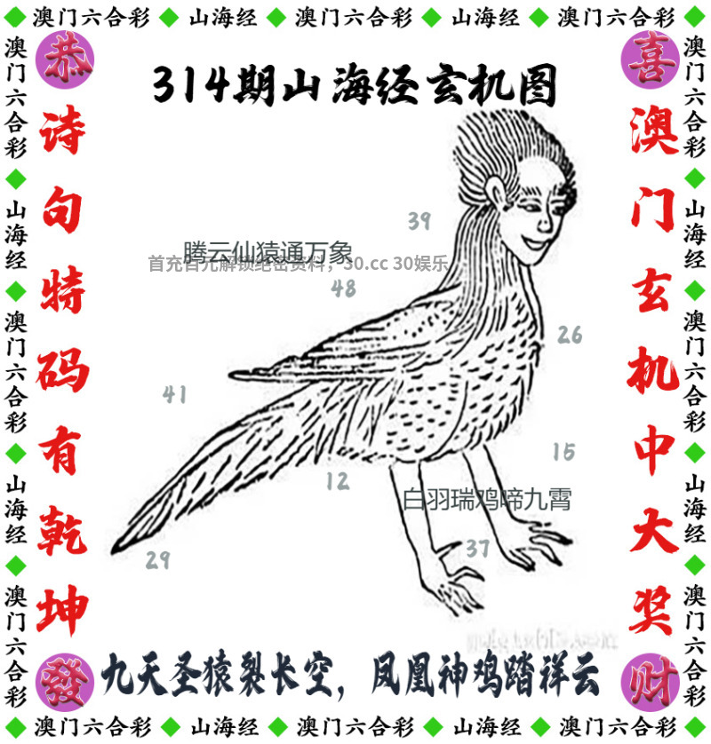 解释:腾云仙猿通万象,白羽瑞鸡啼九霄解牛鸡狗